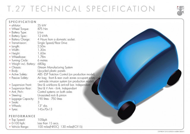 Gordon Murray Design Reveals T.27 Electric Minicar PrototypeAbout a month ago we first brought you details on the new T.27 electric minicar prototype from automotive industry legend Gordon Murray, one of the chief designers of the McLaren F1 supercar. His latest T.25 minicar project is bustling along, with his design firm, the eponymous Gordon Murray...